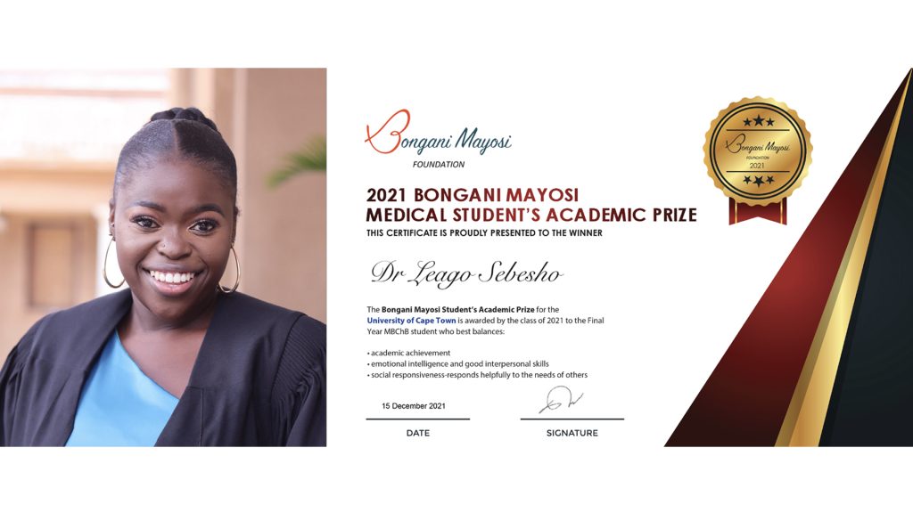 The Bongani Mayosi Student’s Academic Prize is a prestigious national award which aims to recognise final year medical students who epitomise the Academic Legendary and Altruistic life of Professor Bongani Mayosi.